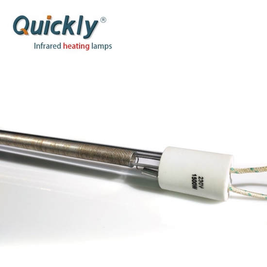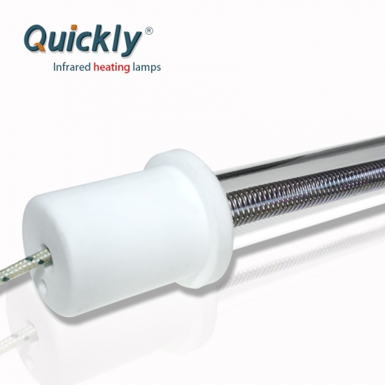 Medium wave infrared heaters produce infrared waves of around 2.6-3.5um and operate at 500 – 1,300C degree. Because of their long life, medium wave quartz infrared heaters perform extremely well in continuous processes. Also it is slower in response to changes in process requirement as compared to the short-wavelength lamps and are slower to heat up and cool down. Single tube IR lamps but with only one side connection lead wire.